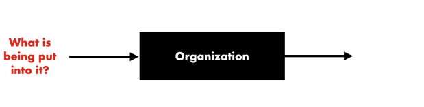 On the left-hand side of the box, write down all your answers to the question: what is being put into this organization?