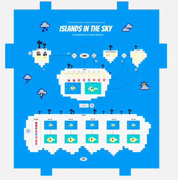 Last year, I worked with a team at the UK’s Open University to develop Islands in the Sky, a planning tool to help the university’s Learner & Discovery Services team navigate the challenges of the pandemic and design their future hybrid working environment.